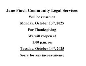 Welcome to the website of Jane-Finch Community Legal Services. We are a non-profit and independent community legal clinic serving the community since 1981. We provide FREE legal services and assistance to low income individuals who live within our catchment area and qualify for our services.